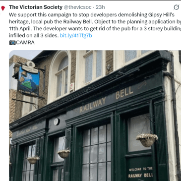 HUGE thank you to all supporters and local residents and heritage groups for support for the Railway Bell! Following a public meeting on 16th March, with residents, local groups, CAMRA and local Cllr Banton and with support from our MP Helen Hayes, Friends of the Railway Bell was formed! And our first local the shout … More HUGE support for the Railway Bell!